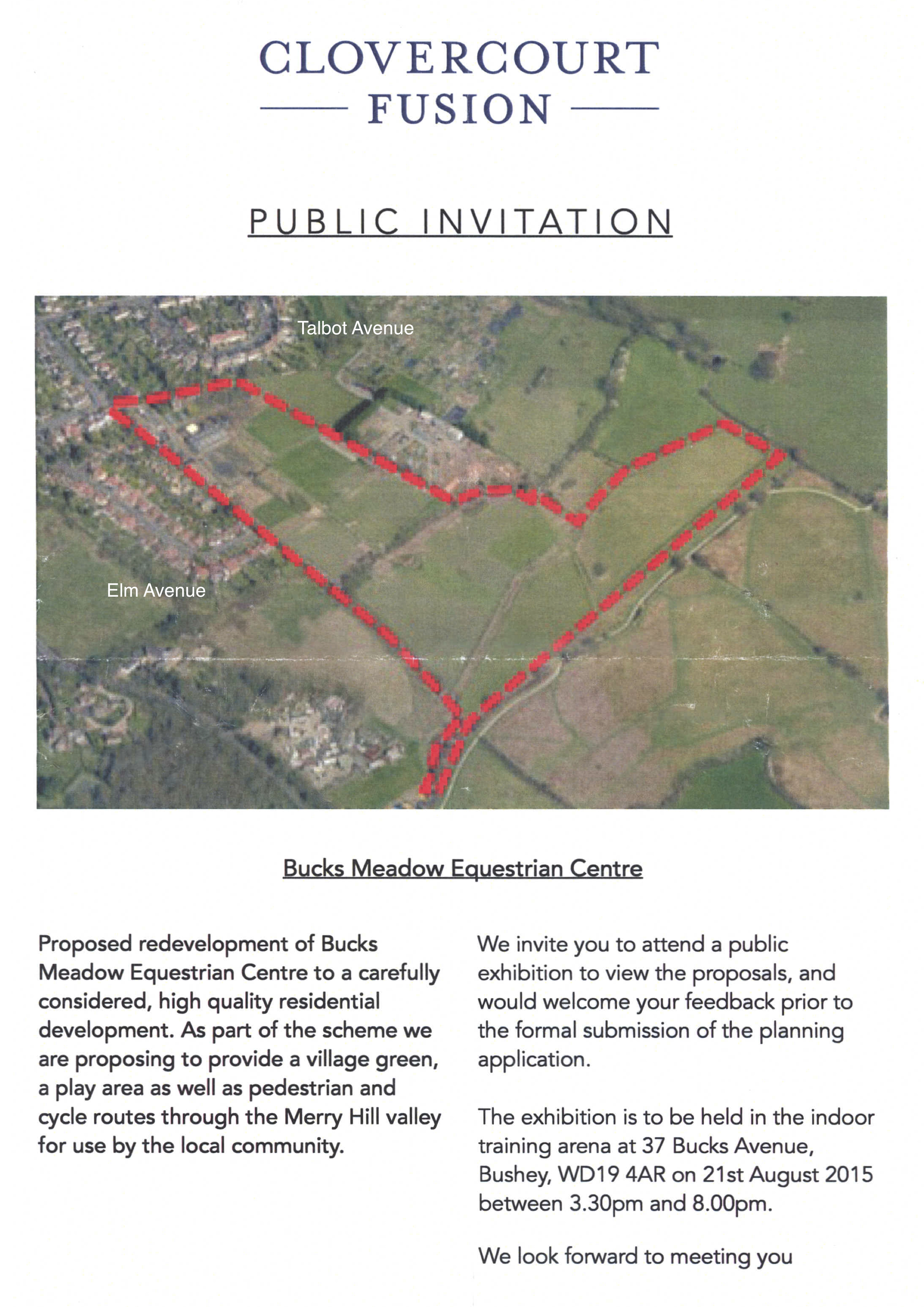 The property developer that plans to build on Bucks Meadow is holding a ‘public exhibition’ to allow residents to view the proposals.