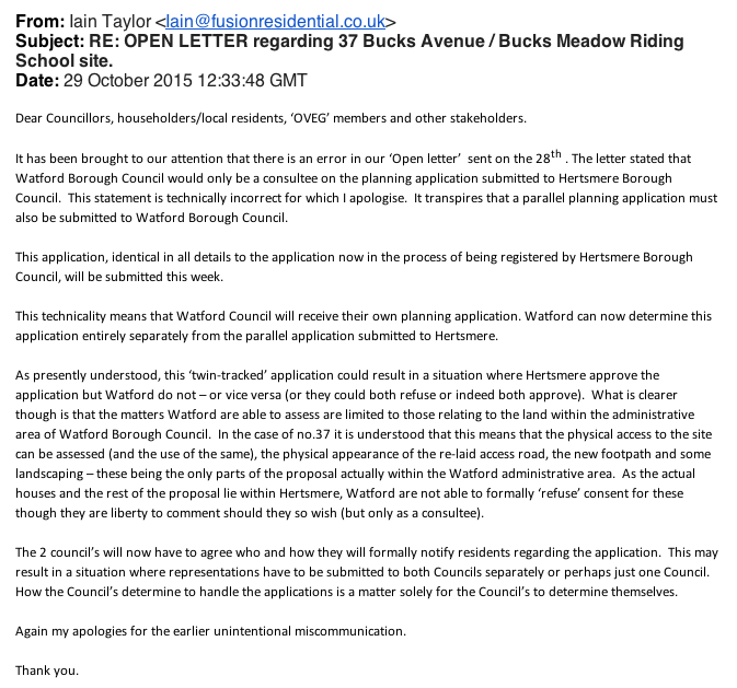 Once planning is available to view we will, as individuals, have three weeks to register any objections to the application. It is important that as many objections as possible are registered as this has proved in the past to be an important factor in influencing councils in their decision making process. Objections should be lodged with both Hertsmere and Watford Councils. Your objections should contain information detailing how this development will affect you and your household, together with concerns pertaining to: