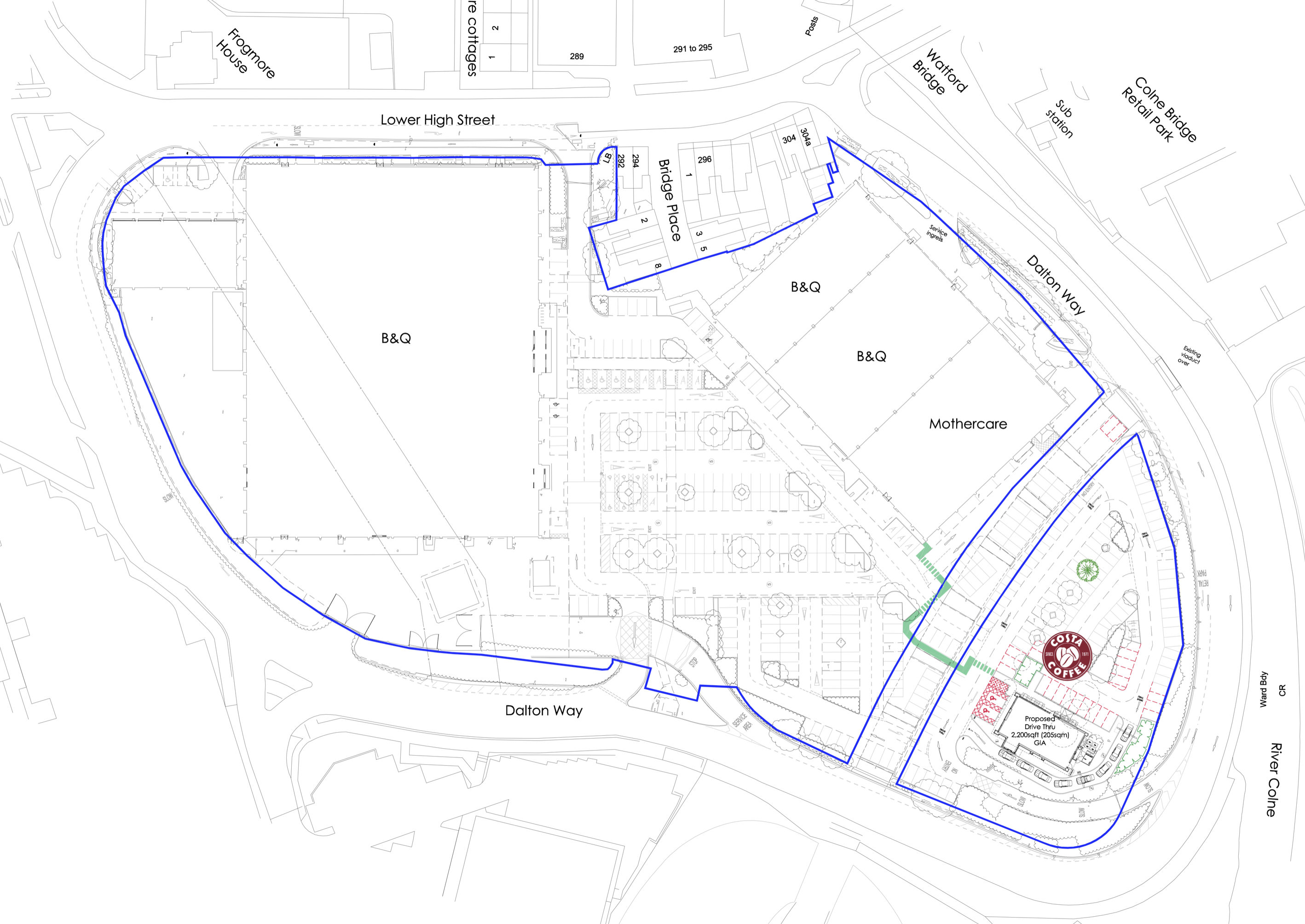 A planning application has been submitted for the erection of a new Costa Coffee Drive Thru at Watford Arches Retail Park, Lower High Street, Watford WD17 2SD.