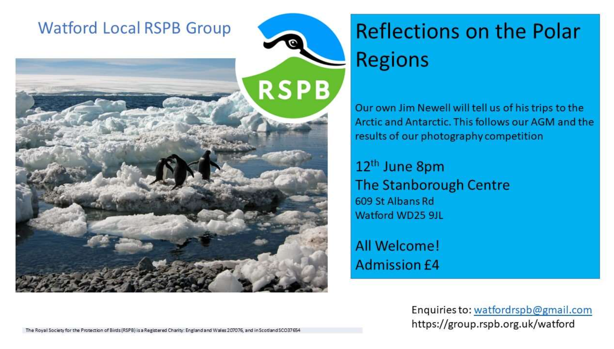 The RSPB’s Jim Newell is hosting at talk on his trips to the Arctic and Antarctic. the session will be held at the Stanborough Centre on St Albans Road on 12 June 2024.